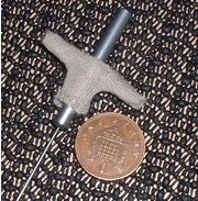 | This was my first attempt at knitting with 180 thickness thread on size 24 needles. It is placed over the handle of a size 20 knitting needle. | |